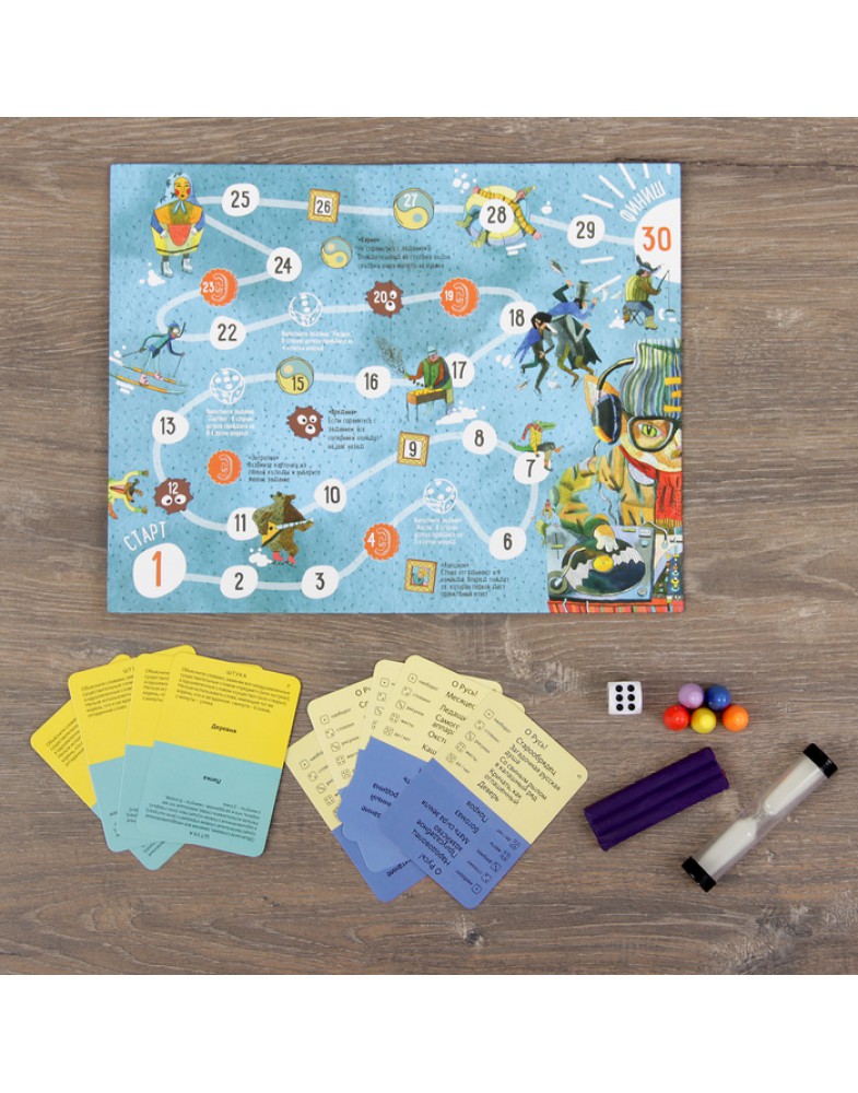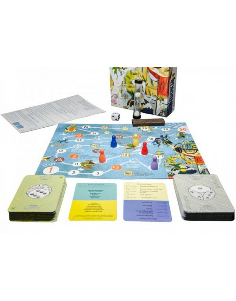В игре есть поле, по которому двигаются фишки команд. У вашей команды есть вы, а у вас есть тема и карточка с предметом или явлением, которое вы должны объяснить своим же. Пойте из-за угла или не издавайте ни звука, лепите из пластилина, покажите пантомиму, нарисуйте рисунок — Экивоки потребуют от вас максимума изобретательности. Победит та команда, которая доберётся до финиша первой.