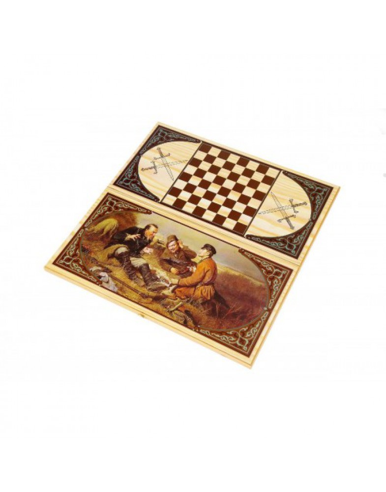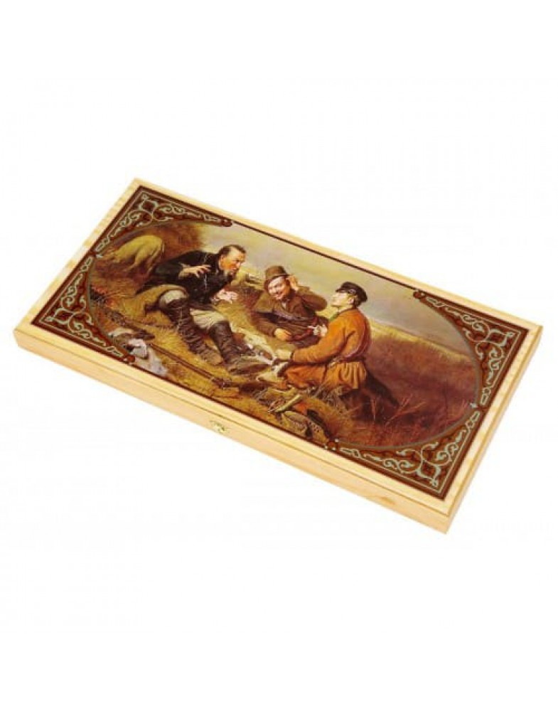 - Нарды+Шашки "Походные - Охотники на привале" малые (40х20х4 см) дерево