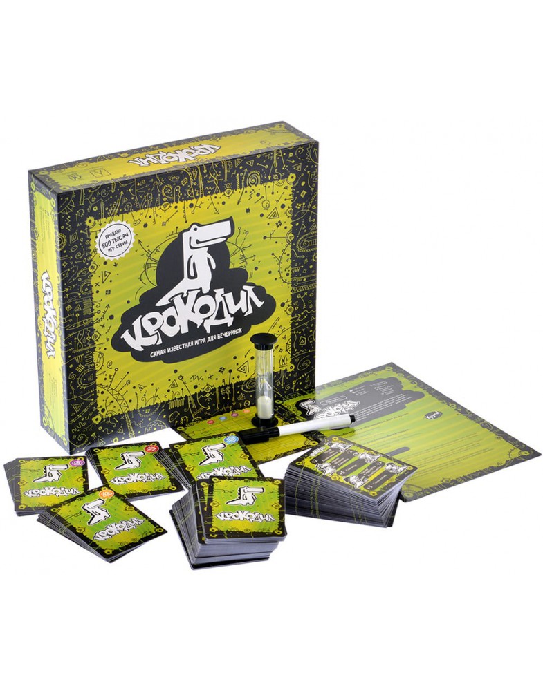 Пожалуй, нет в этой стране человека не знакомого с игрой "Крокодил". Перед вам классический вариант игры, появившейся еще в СССР и легшей в основу таких игр как, например "Активити". Приготовьтесь жестами за одну минуту объяснять всё – от простых слов и пословиц до певцов и актеров. Классические правила настольной игры "Крокодил" в это коробке с игрой здесь дополнены различными дополнительными заданиям, что делает игру занимательней и интересней. Например, с помощью специальных карточек можно назвать первую букву слова или получить еще одну минуту. Чем сложнее слово или задание, тем больше команда игроков получает победных очков.