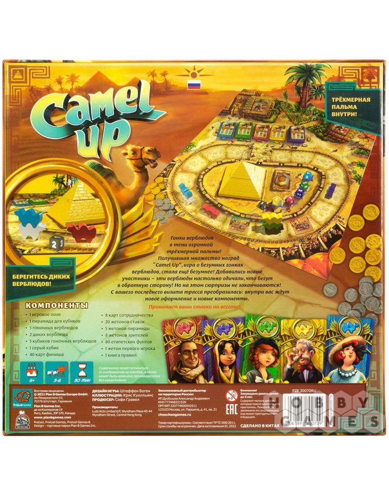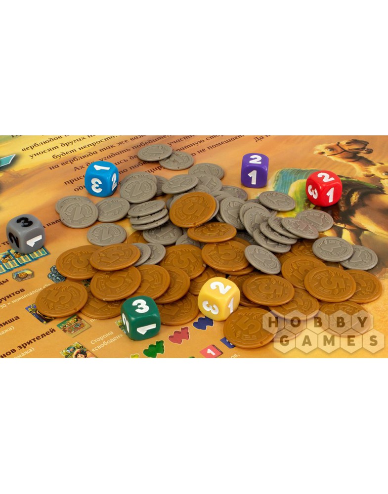 Настольная игра Camel Up – это весёлая, безумная и полная сюрпризов гонка! Игроки выступают в качестве зрителей на забеге верблюдов, в ходе которой им предстоит делать всё новые и новые ставки в зависимости от ситуации на поле. Безусловно, можно сделать один единственный выбор в пользу любимчика и до последнего за него топить. Но так ли вы удачливы? Все игроки, начиная с первого, по очереди могут выполнить одно из четырёх доступных действий: