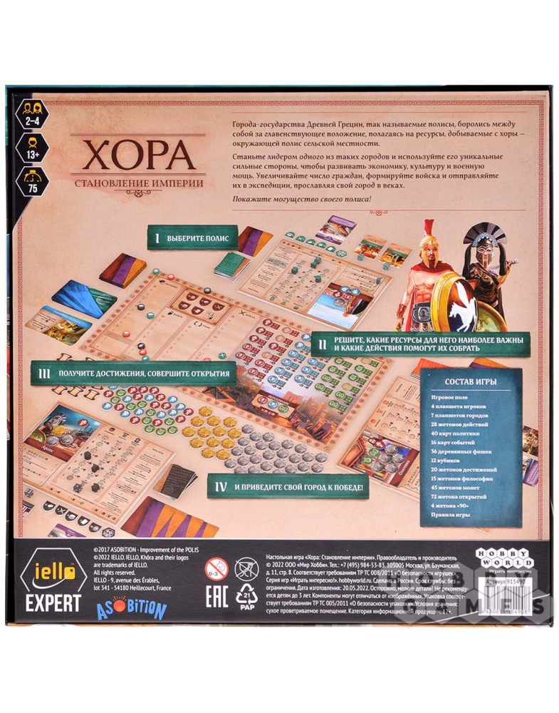 Полисы бесконечно долго враждовали между собой, соревнуясь за главенствующее положение среди остальных городов. В этой борьбе за развитие наибольший упор делался на хору; так называлась сельская местность, находящаяся в окружении полиса. И именно хора поможет вам привести свою империю к процветанию в этой настольной игре.