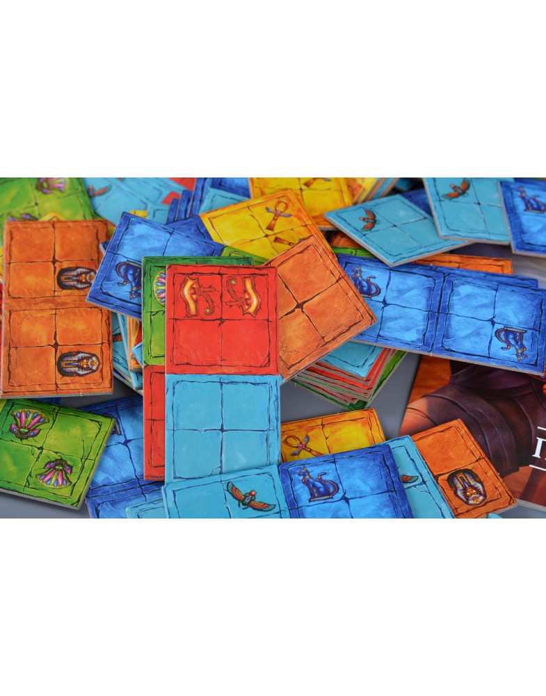 В этой игре вы будете тем самым архитектором. Вам нужно будет построить самый невообразимый образец усыпального искусства. Принцип игры похож на домино. Каждый ход вы будете строить уровень пирамиды, по одному за раунд, всего четыре уровня. После окончания работ, заканчивается партия и вы считаете очки. В свой ход вы берёте жетон из карьера, выкладываете его, выкладываете фишку драгоценности (если у вас есть такая же, как на только что выложенном жетоне), добавляете одиночные жетоны, если хотите, а затем обновляете карьер.