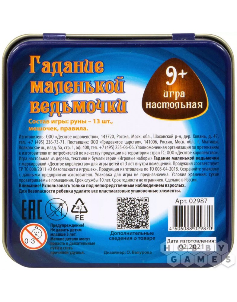 Купить настольную игру Гадание маленькой ведьмочки (жестяная коробочка) в Севастополе или Крыму, можно позвонив нам по телефону +7-978-702-207-2 или оформив заказ на сайте